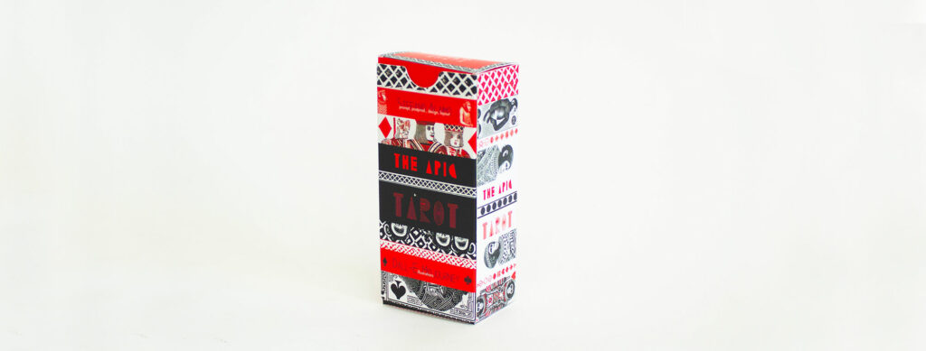 The Apic Tarot is a unique reinterpretation of the traditional French playing Tarot, a 78-card deck consisting of five suits (Spades, Hearts, Diamonds, Clubs, and Trumps), designed for 3 to 5 players. Inspired by the iconic Tarot Ducale, this edition refreshes the card compositions, typography, and artwork by featuring monkeys in place of human figures, with each card telling a story through its intricate design. Unlike the Tarot de Marseille, this deck is focused on gameplay rather than divination.